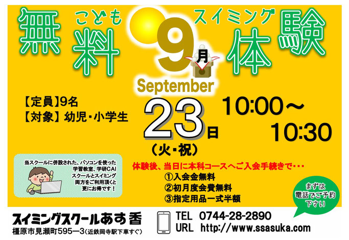 ●発達障害児のスイミング 短期教室(8月・9月) 6/26 更新
